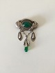 Tidlig Evald Nielsen Sølv Broche med Grønne Sten
