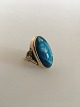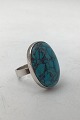 Hans Hansen Sterling Sølv Ring No. 36 med Grøn Sten.