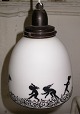 Hængelampe i hvid glas med motiver.