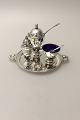 Georg Jensen Sterling Sølv Konge Salt kar med blå emalje ...