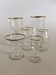 Holmegaard Ida rødvinsglas med guld på stilk, rand og fod.