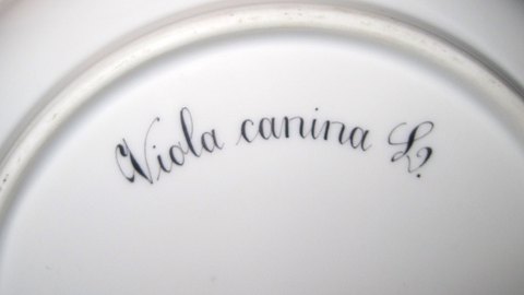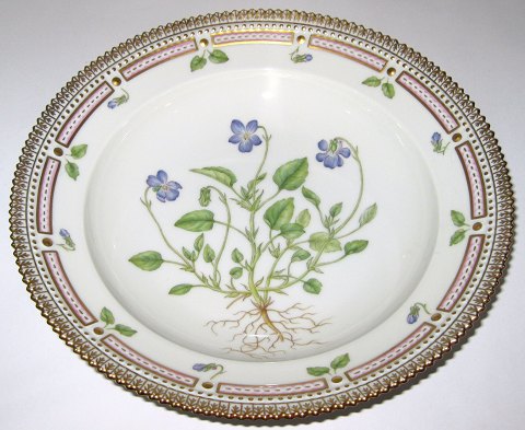 Kgl. Porcelæn Flora Danica Dyb Tallerken 20/3546 nyt nummer 604. Måler 22,3cm. Blomsten er: Viola canina L. Første sortering og i perfekt stand.