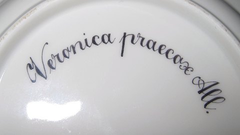 Kongelig Porcelæn Flora Danica Frugt tallerken 20/3590 nyt nummer 601. Blomsten er: Veronica Praecox All. Måler 14,5cm, første sortering og i perfekt stand.