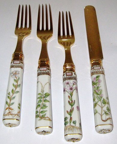 Royal Copenhagen Georg Jensen Dessert Flatware. Gilded sterling silver flatware from Georg Jensen and Flora Danica haldes. In perfect condition.