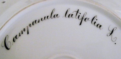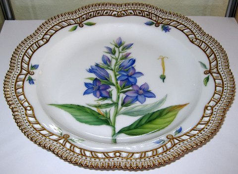 Kongelig Porcelæn Flora Danica Serveringsfad 20/3574 eller 381. Blomsten er: Campanula latifolia L. Første sortering og i perfekt stand. Måler 29cm