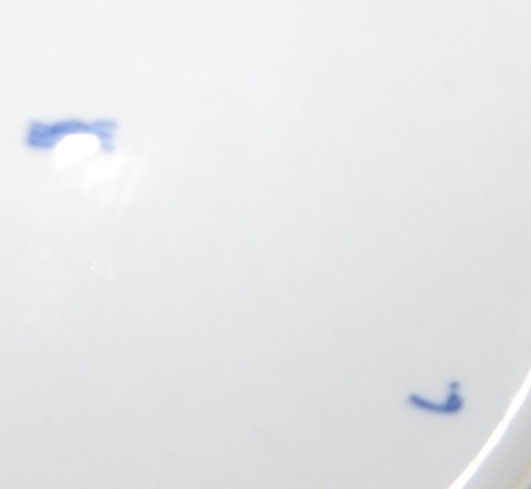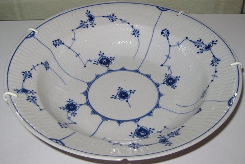 Royal Copenhagen Antique Blue Fluted Plain Deep Plate from 1790-1820. Measures 23 cm dia. / 9 1/16 in. Has a chip on the rim. Marked with painter number 6.