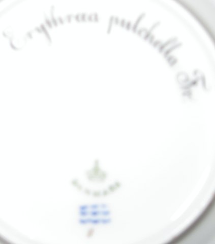 Kgl. Porcelæn Flora Danica Tallerken No 3552 (5). Måler 14cm og er i perfekt stand. Latinsk navn: "Erythræa pulchella Fr." Nyt nummer 615.