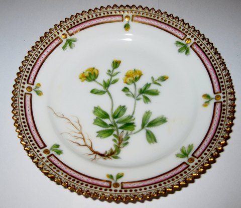Kgl. Porcelæn Flora Danica Side Plate No 3552 (2). Er meget tidlig fra 1893-1900. Måler 14cm og standen er ikke perfekt, har reparation klokken 7. Latinsk navn: "Potentilla retusa Retz F.D & Horn." Er lavet mellem 1893 og 1900. Nyt nummer 615.
