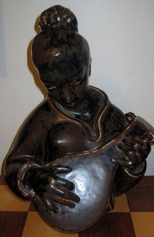 Royal Copenhagen Johannes Hedegaard Stoneware Figurine "Mandolingirl" No 21018. Done in March 1950 in 5 copies. This is copy number 3 and is in perfect condition. Measures 39.