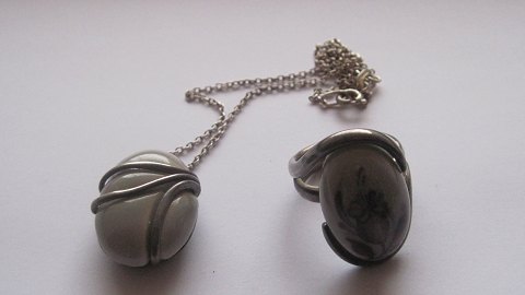Kgl. Porcelæn Sterling Sølv vedhæng og Ring. I perfekt stand. Prisen er per del. Ring størrelse 54, vejer 12,3g. Halssmykke vejer 10,6g