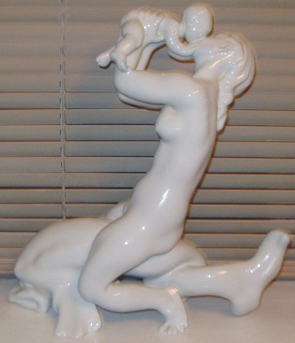 Kai Nielsen Blanc de Chine Royal Copenhagen Figurine "B&G 4057/57 Woman kissing child 39cm. In perfekt condition and marked as a first.