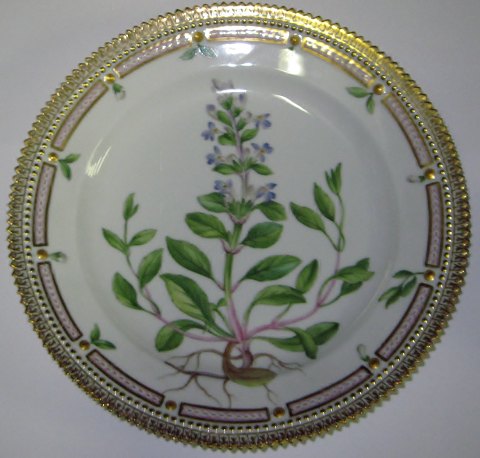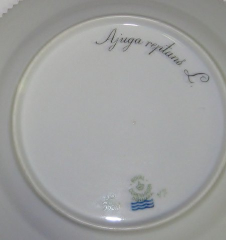 Kgl. Porcelæn Flora Danica Frokosttallerken No 3550. Måler 22cm og er i god stand. Latinsk navn "Ajuga septans L."