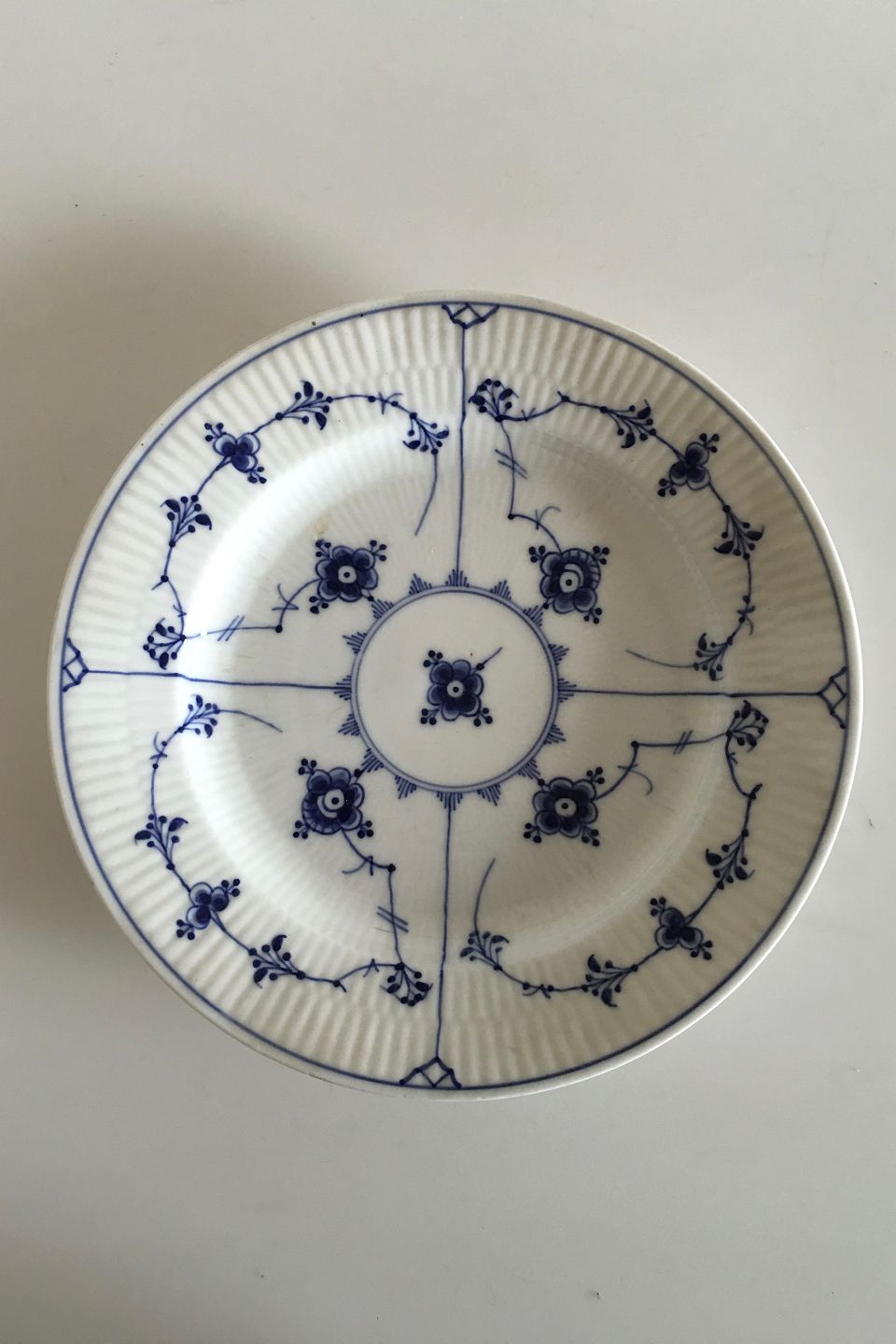 Royal Copenhagen Musselmalet Riflet Spisetallerken No 176. Måler 23,5 cm