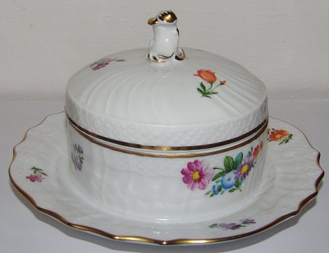 Kgl. Porcelæn Let Saksisk Blomst Smørskål med underfad No 1503. Måler 17cm og er i god stand. Royal Copenhagen.