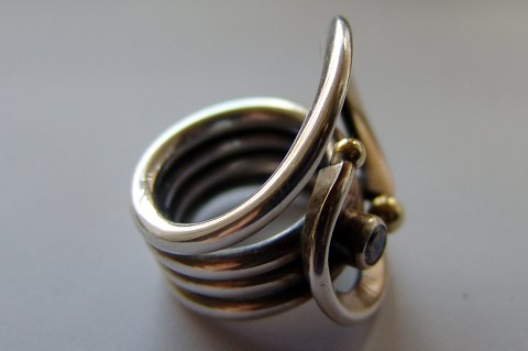 Blicher Fuglsang Ring in Sterling Silver with Stone. Partly gilded and in a nice modern design.