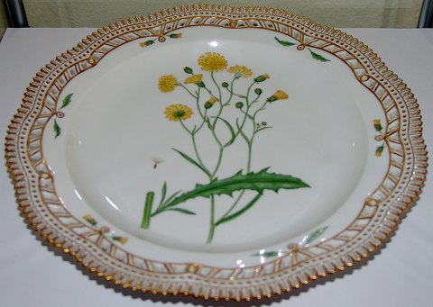 Kongelig Porcelæn Flora Danica Gennembrudt Fad eller Buffet Tallerken 20/3574 nyt nummer 381. Blomsten er: "Leontodon autumnole Oed". Måler 29cm, første sortering og i perfekt stand. Royal Copenhagen