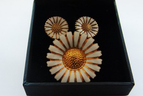 Margurite/Marguerite Brooch and Earrings in Sterling Silver/Enamel. Earrings with clips. From Bernard Hertz silversmith and is in perfect condition. Weighs 12,8g / 0,45oz, 6,6g / 0,23oz