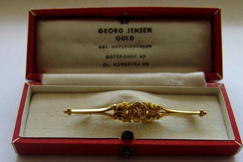Georg Jensen Broche i 18K guld fra 1933-1944. Måler 6,1cm og er i perfekt stand. Original boks medfølger.