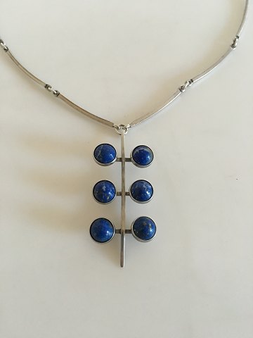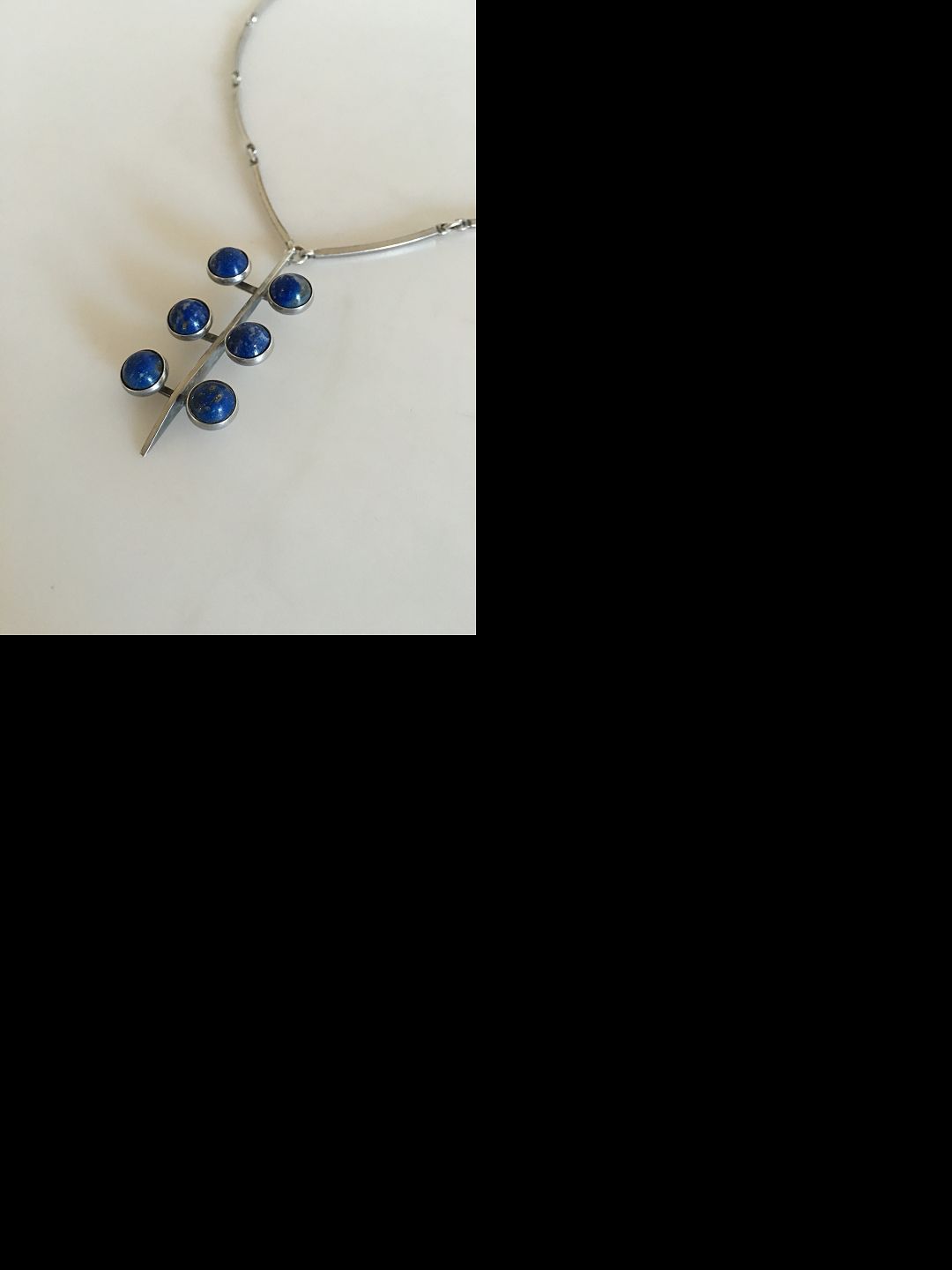 N.E. From Halskæde med vedhæng i sterling sølv og med Lapis Lazuli. Kæde måler 54cm og vedhæng 5,5cm. I fin stand. Vejer 31,3g