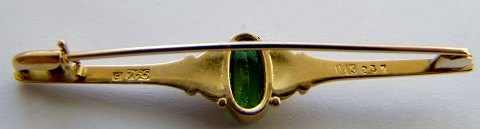 Georg Jensen Broche i Guld med grøn sten fra omkring 1904-1914. Måler 5,7cm og er i god stand.