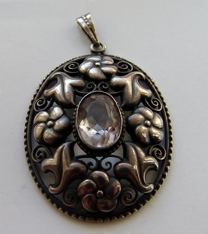 Sterling Sølv Broche med hvid Sten. Måler 4,3cm og er i god stand.
