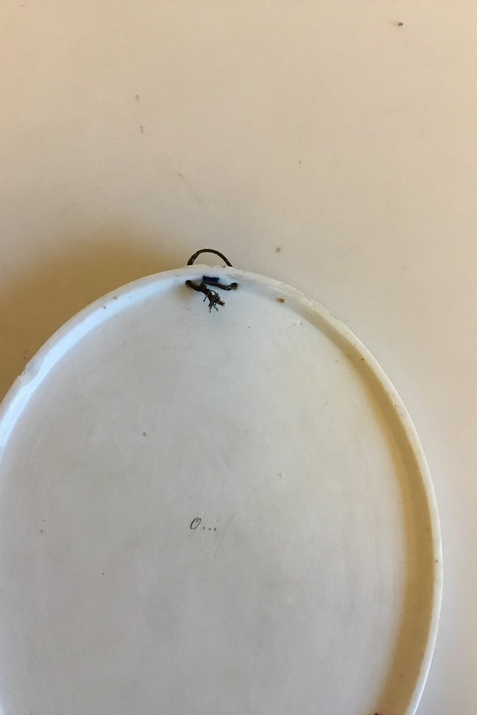Tre Kgl. Porcelæn Ovale Vægtallerkener med typografisk motiver fra 1870-1880 af Emil Cordius Heinrich Orth. De måler 18cm og er i rimelig god stand. To af platterne har afslag bag på i siden. Samt der er div små afslag på sløjfen i toppen. Royal Copenhagen. Items are signed O... for Emil Cordius Heinrich Orth