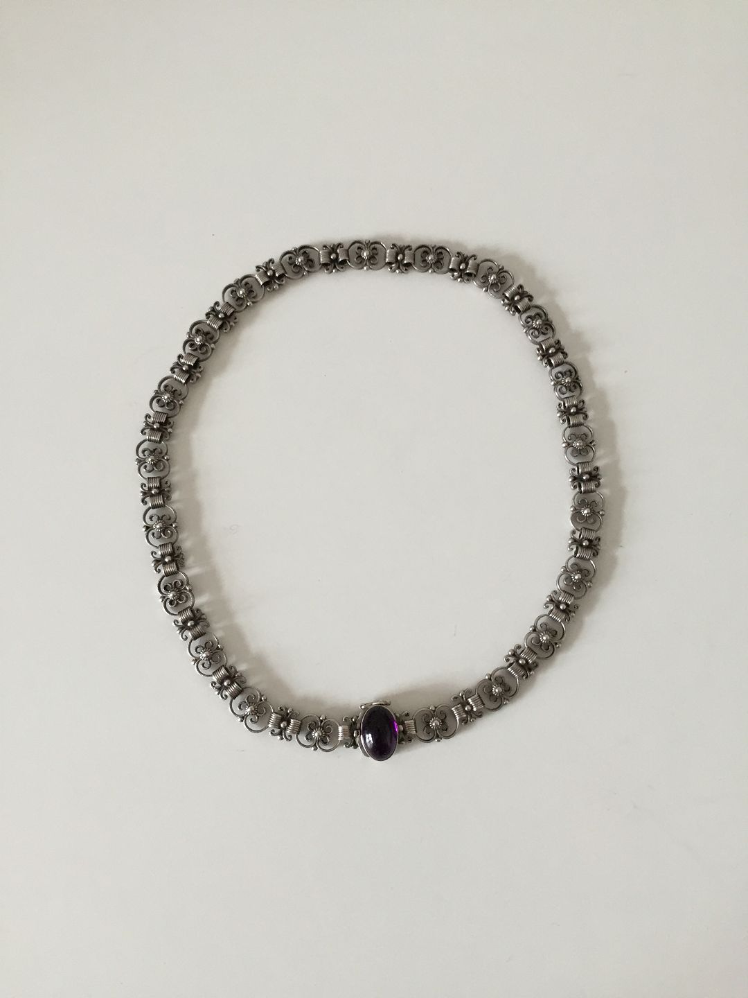 Georg Jensen Sterling Silver Necklace with Amethyst No 12