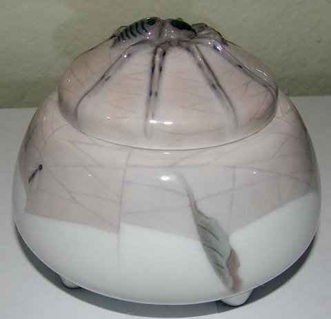 Royal Copenhagen Art nouveau Edderkoppe og bi lågskål. Fremstår i perfekt stand.