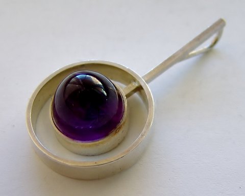 N. E. From Vedhæng i Sterling Sølv med Armetyst. Måler 4,5cm og er i god stand. Sten med brugsspor, men igen afslag.