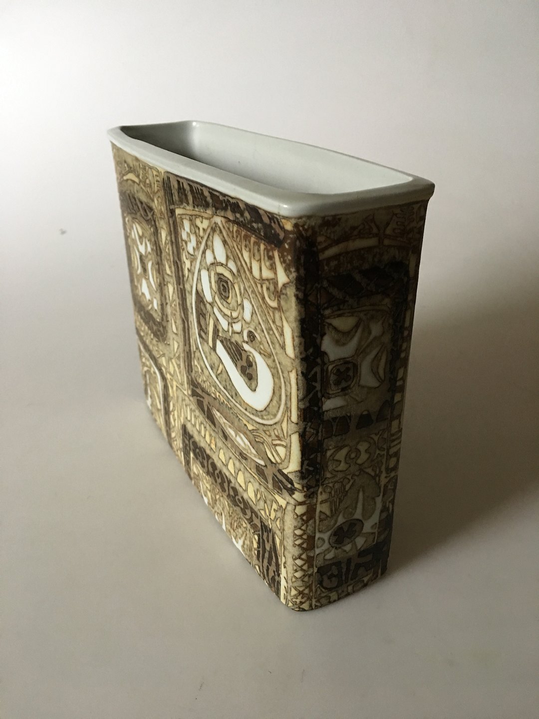 Royal Copenhagen Fajance Baca Vase 719/2942. Måler 17,2cm x 6cm x 14,5cm og er i fin stand. Designet af Nils Thorsson.