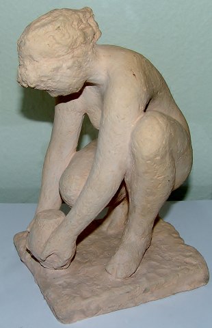 Johannes Hedegaard Ler figur af ung nøgen pige fra 1941. Måler 25cm høj og 19cm bred. Fremstår i perfekt stand. Signeret på basen Johannes Hedegaard 41 og under bunden Johannes Hedegaard.