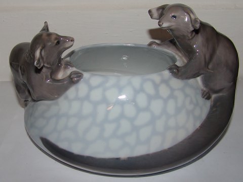 Royal Copenhagen Art Nouveau Bowl with two Otters No 601. Measures 20cm and is in good condition.