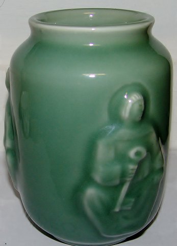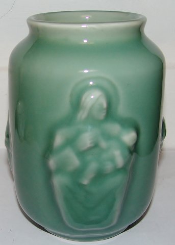 Royal Copenhagen Stentøjsvase med Celedon Glasur af Jais Nielsen "Maria og Barnet". Måler 15,5cm og er i god stand.