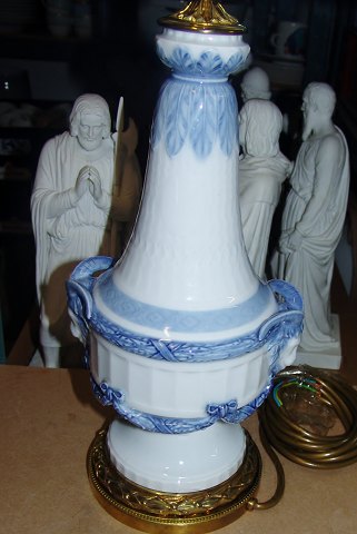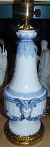Royal Copenhagen Blue Fan Table Lamp with Bronze Mounting No 1212/11537. Measures 40,5cm and is in perfect condition. With ram heads on the side