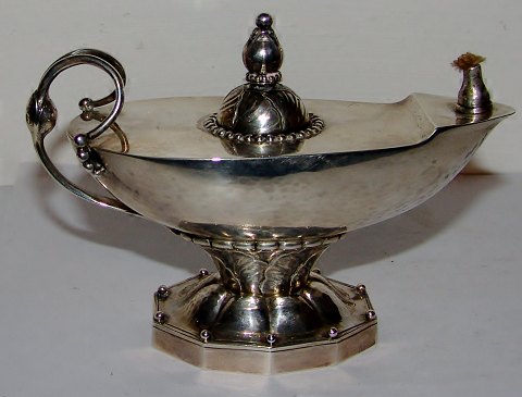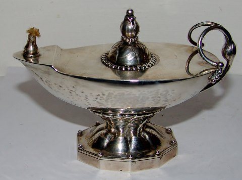 Georg Jensen Olielampe i sølv No 12. 13cm lang og 9,5cm høj. I fin stand. Lavet i 1919-1927.
