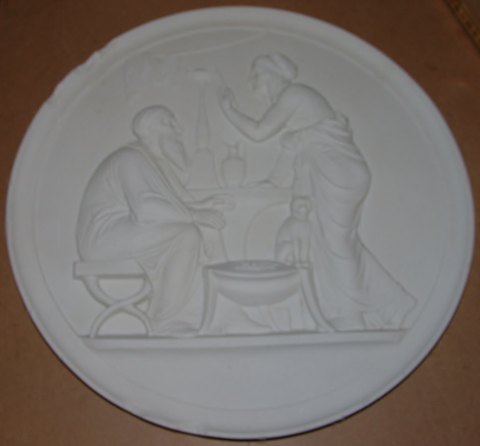 Royal Copenhagen Biscuit Platte Alderdom og Vinter No 119. Kopi fra 1842-43 af N.G.Henriksen efter Thorvaldsens original fra Rom 1836. Måler 35cm. Har mange afslag på kanten.