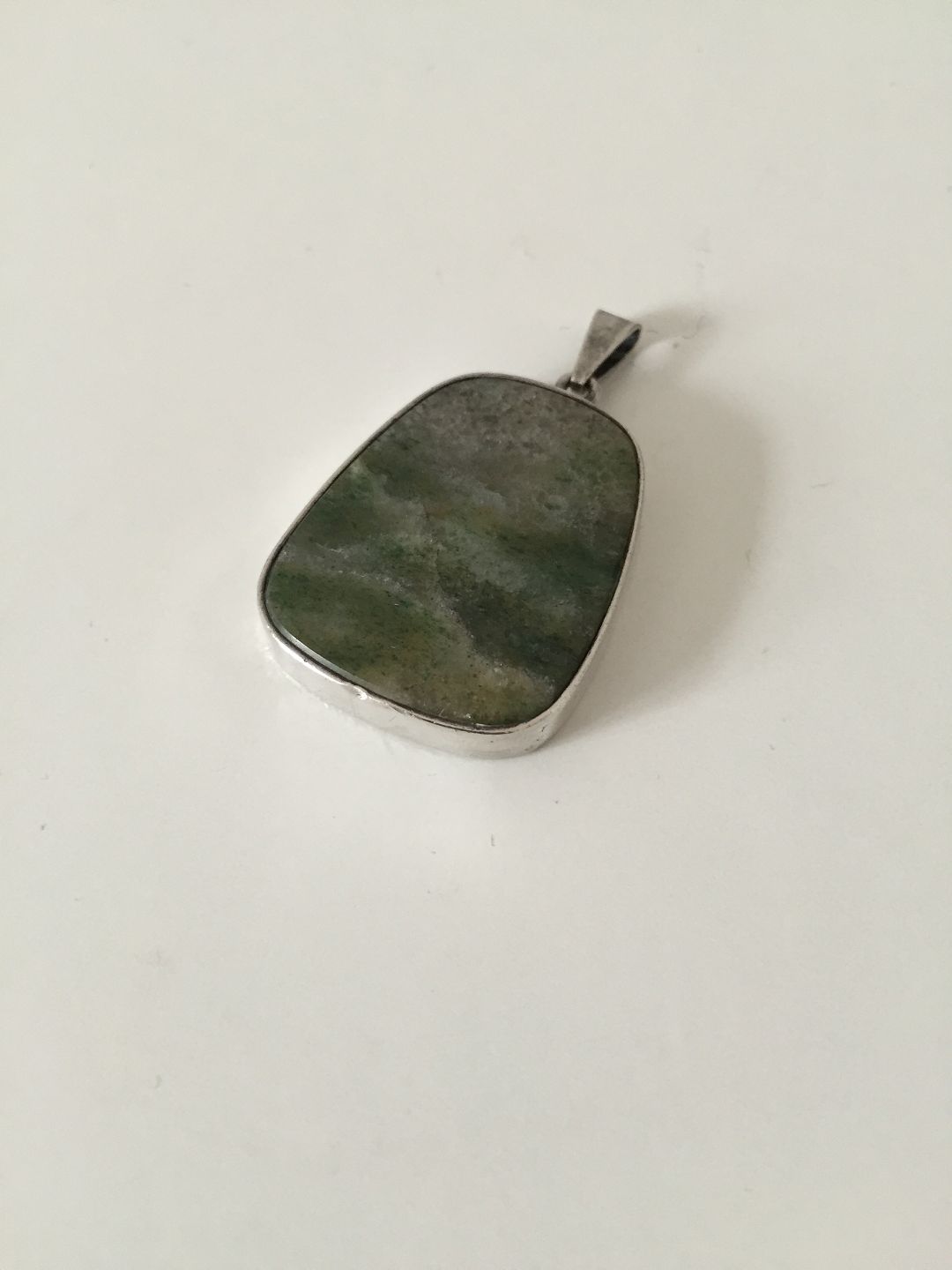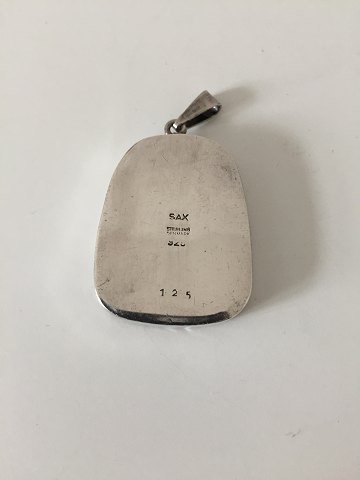Per Sax Møller Pendent in Sterling Silver with stone. Measures 3.5 cm / 1 3/8 in. and is in good condition. Weighs 16.3 g / 0.57 oz.