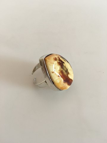N.E. From Sterling Silver Ring with Amber. Is in good condition and has adjustible ring size. Measures 3,5cm. Size 60. Can be adjusted up and down. Weighs 16,3g / 0,57oz.