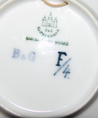 Bing og Grøndahl Art Nouveau Vægtallerken med Stork No F/4. Måler 13,3cm og er i god stand.