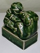 Sjælden Royal Copenhagen Stentøjs Figur No 22157 af Henry Herup af en Nisse og Hund. Måler 8,2cm høj og er i god stand.