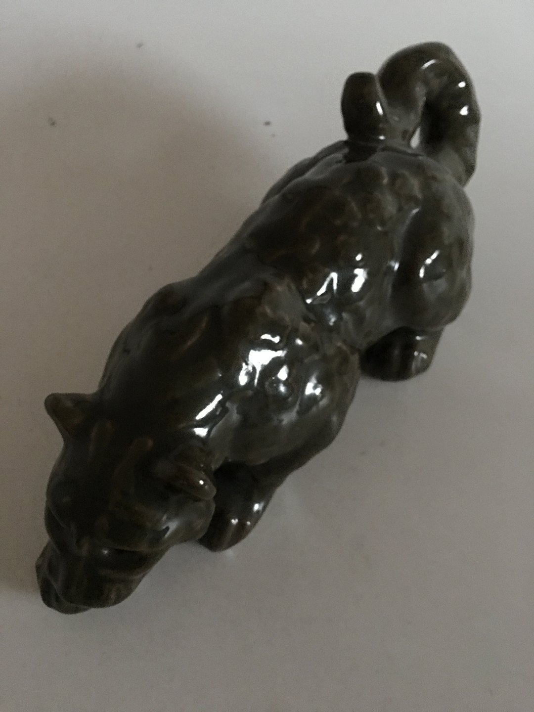 Royal Copenhagen Knud Kyhn Stoneware Leopard Figurine No 21419. Measures 40cm, beautiful olivegreen and in good condition.