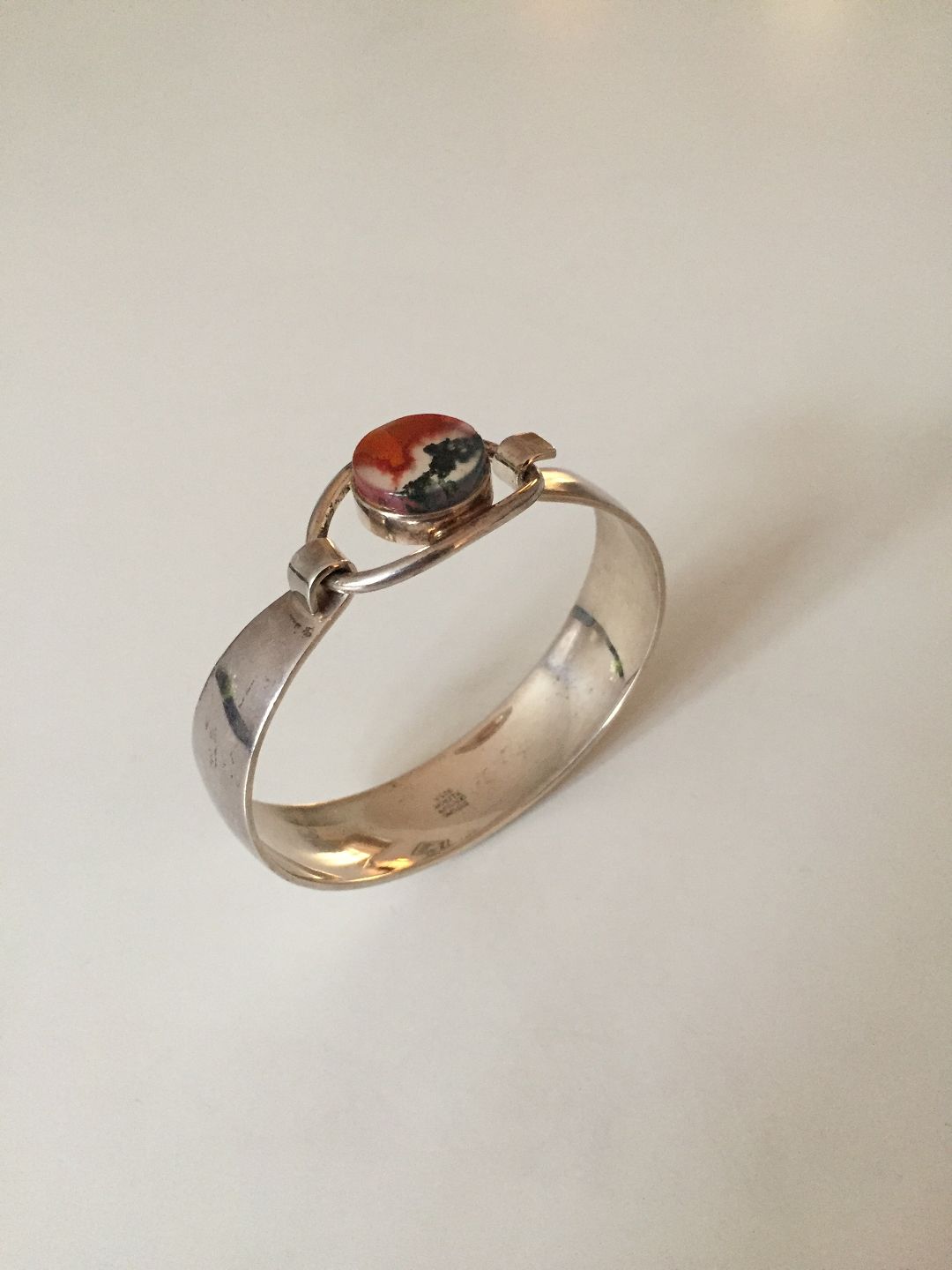 N.E. From Sterling Sølv Armbånd med rigtig flot Sten. Måler 6cm i dia og i flot stand. Vejer 29,4g