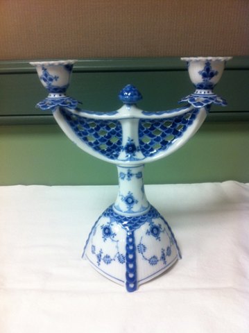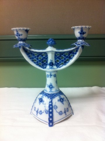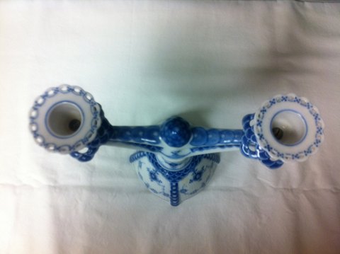 Royal Copenhagen Musselmalet Helblonde 2-armet lysestager No 1169. Måler 24,4cm og er i god stand. Er fra før 1930.