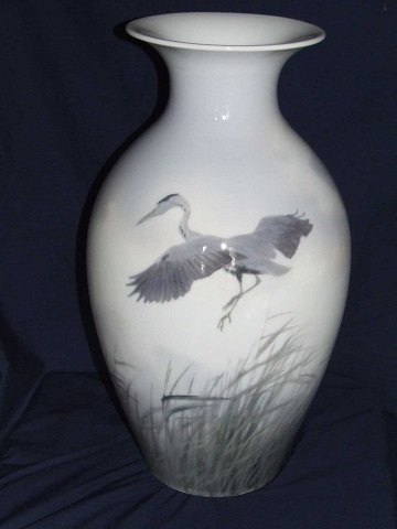 Royal Copenhagen Unika Vase med Hejre af Vilhelm Theodor Fischer fra 1925. Måler 52cm høj.
