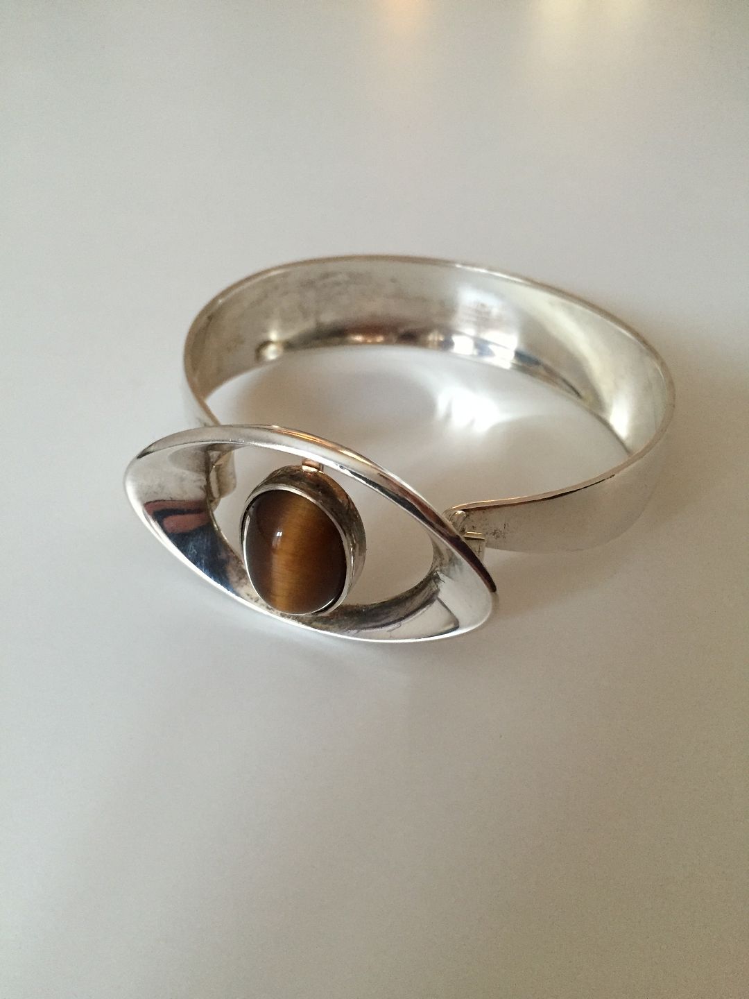 N.E. From Sterling Silver Bracelet with Tigereye. Measures 5,8cm, weighs 37,3g / 1,31oz and is in good condition.