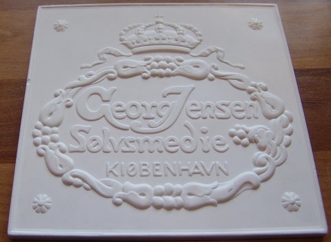 Georg Jensen Dealer Sign. Measures 12,3cm x 11,5cm. Done in Bisque or Plaster. If plaster, then it is done in VERY hard plaster.