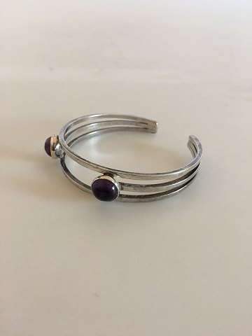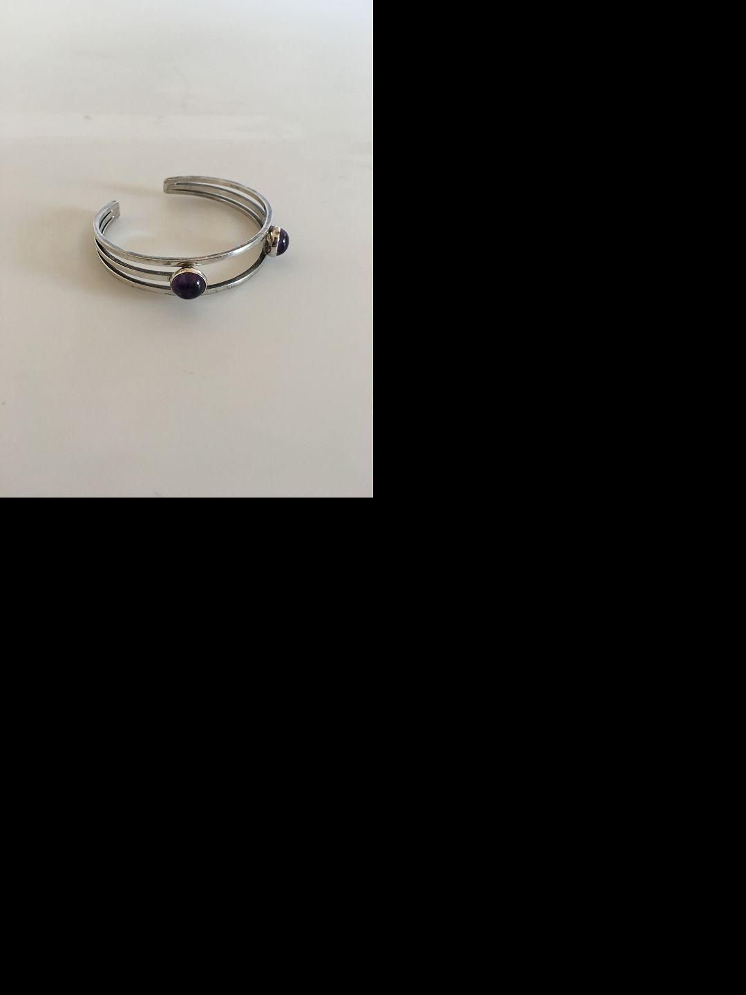 N.E. From Armbånd i Sterling Sølv med ametyst. Måler 5,2cm i indre mål, vejer 18,2g og er i god stand.