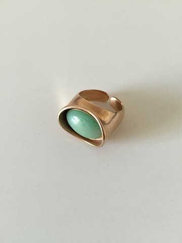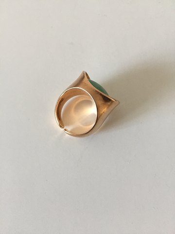 Bent Knudsen 14K Moderne Guld Ring med Chrysopras. Måler 1,7cm i indre mål. Men er lavet så ringen let kan justeres. Vejer 11g. I god stand.
