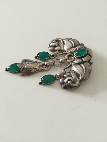 Dansk Skønvirke Broche med Grønne Sten af William Fuglede, København 1907-1937. Måler 7,5cm x 5,3cm. I god stand. Vejer 17g