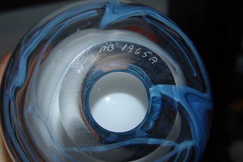 Holmegaard Michael Bang Unika vase. Signeret HG, MB og 1965A. Måler 16cm x 11cm. I god stand, men har lidt afskrapning på toppen.